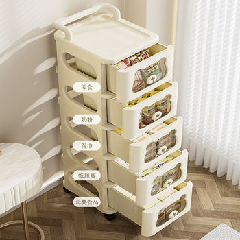 Cream Color Mobile Push-pull Storage Cabinet Snack Storage Cart Plastics Cabinet Storage Drawer